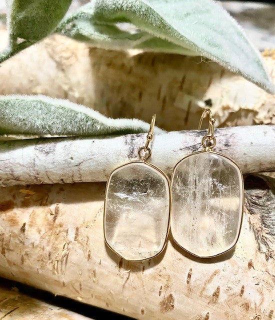Beautiful Hexagon Stone Earrings Gold Accents